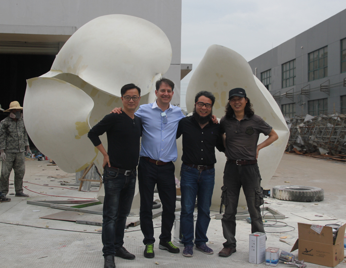 南京先登雕塑不銹鋼雕塑作品《天使之吻》創(chuàng)作完成,歐洲特使尼古拉斯到訪中國表示祝賀,尼古拉斯對該作品所傳達(dá)愛的巧妙構(gòu)思和極具現(xiàn)代古典主義感染力的創(chuàng)造表示高度贊賞。該作品由著名雕塑家郭愛軍和鄭德東教授首度聯(lián)合創(chuàng)作,兩位藝術(shù)家對雕塑《天使之吻》作品在通過用抽象了的玫瑰花瓣構(gòu)筑的作品醞釀多年,幾易其稿。作品通過生命張力的美好形象,讓觀眾對愛的憧憬,寄予浪漫的期許和想象。為江蘇洋河農(nóng)業(yè)嘉年華——愛情主題館點燃了愛的浪漫火焰。